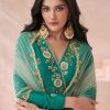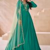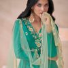 Green silk embroidered anarkali gown, made with sequence stone and embroidered work. Comes with matching top and net dupatta. Does not come with trouser.