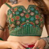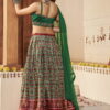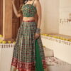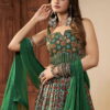 Green silk embroidered lehenga choli, made with mirror, thread hand work. Comes with a matching silk lehenga, choli and georgette dupatta.