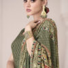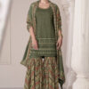 Green silk embroidered traditional sharara suit made with thread sequins work. Comes with matching silk top, georgette bottom and dupatta.