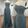 One Shoulder Elegant Beaded Evening Gown Dress, beautifully hand crafted together with heavily beaded patterns all over the dress.