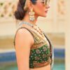 Green smooth silk woven lehenga choli crafted with royal themed print, stone and mirror work. Comes with matching lehenga choli and dupatta.
