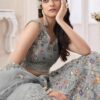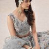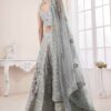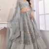 Grey art silk embroidered bridal lehenga choli, made with thread and zarkan work. Comes with matching organza silk lehenga, choli and net dupatta.