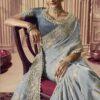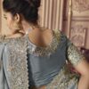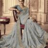 Grey fancy silk wedding party wear saree made with intricate embroidery border work. The saree comes with a matching blouse.