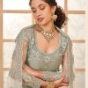 Lehenga :- Net with banglori silk inner fabric with embroidery work like cording & thread work with stone work all over and semi stitched lehenga will come upto 44 inch waist size it will be stitched and lehenga length is 44 inch.