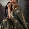 Grey embroidered banarasi wedding saree, embellished with swarovski stone and thread work enhanced by fancy tassels. The saree comes with a matching blouse.