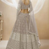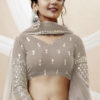 Grey georgette embellished lehenga choli, designed with sequin zari and foil mirror work. Paired with matching blouse and dupatta.