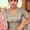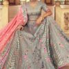 Grey heavy silk lehenga choli, designed with sequin, zari work, hand embroidered paired with matching embroidered blouse and banarasi silk dupatta.