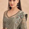 Grey lehenga style saree with belt crafted with sequin and thread embroidery work. The saree comes with a unstitched matching blouse.