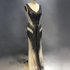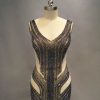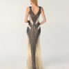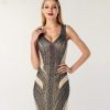 Grey Luxury V-Neck Mermaid Sequinned Evening Dress, beautifully hand made together with crystal bead patterns on the dress with empire waistline this comes with padded bust.