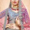 Grey silk bridal lehenga choli, designed with sequin, zari work, hand embroidered paired with matching embroidered blouse and net dupatta.