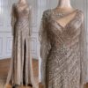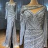 Heavily beaded full sleeve Evening Dress, beautifully hand crafted together with beaded crystal work patterns all over the dress.