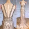 Heavily Beaded Nude Feathered Evening Dress, beautifully hand crafted together with embroidered beaded work patterns all over the dress.