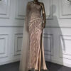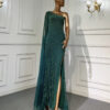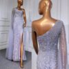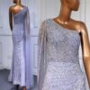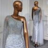 Heavily Embellished One Shoulder Drape Evening Dress, beautifully hand crafted together with embroidered beaded work patterns all over the dress.