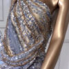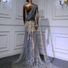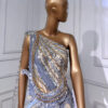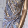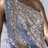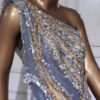 High Split Shoulder Drape Beaded Evening Dress, beautifully hand crafted together with sequins all over the dress.