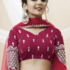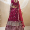 Hot pink georgette embellished lehenga choli, designed with sequin zari and foil mirror work. Paired with matching blouse and dupatta.