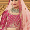 Hot pink silk bridal lehenga choli, designed with sequin, zari work, hand embroidered paired with matching embroidered blouse and net dupatta.