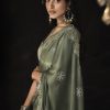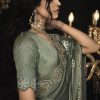 Khaki embroidered wedding saree, designed with sequin stone and zarkan work enhanced by fancy tassels. The saree comes with a matching blouse.