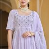 Lavender embroidered palazzo style anarkali suit crafted with thread and sequins work. Comes with Top, bottom & dupatta.