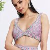 Lavender floral sequinned wedding lehenga Choli in pure chiffon delicately made with, thread, sequin, stone and diamond work. Comes with a matching choli and dupatta.