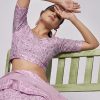Lavender heavy embroidered bridal lehenga choli, made with thread, sequins and zarkan work. Comes with matching soft net lehenga, choli and dupatta.