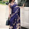 Light brown floral print satin crepe saree crafted with all over print design. The saree comes with a matching unstitched blouse.