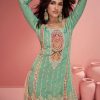 Light green embroidered palazzo Suit made with sequence stone and thread work. Comes with matching top, pant and dupatta.
