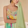 Light green embroidered party wear sharara suit made with thread zari, and sequin work. Comes with matching top, bottom and dupatta.