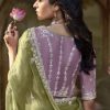Light green embroidered wedding saree, embellished with sequin stone and thread work enhanced by fancy tassels. The saree comes with a matching contrast blouse.
