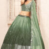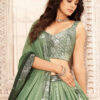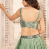 Light green faux georgette heavy designer lehenga choli made with handwork thread and sequins. Comes with matching choli and dupatta.