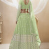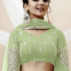 Light green georgette embellished lehenga choli, designed with sequin zari and foil mirror work. Paired with matching blouse and dupatta.