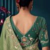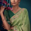 Light green pure silk wedding saree, designed with thread, zari work enhanced by fancy lace border. The saree comes with a contrast matching blouse.