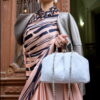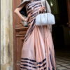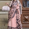 Light Peach retro print satin silk saree crafted with all over print design. The saree comes with a matching unstitched blouse.