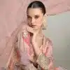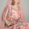 Light pink chinon digital print Anarkali gown, made with sequence and embroidered work. Comes with matching top and net dupatta. Does not come with trouser.