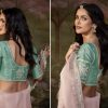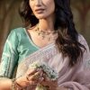 Light pink embroidered wedding saree, embellished with sequin stone and thread work enhanced by fancy tassels. The saree comes with a matching contrast blouse.