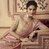 Light pink fancy silk wedding party wear saree made with intricate embroidery border work. The saree comes with a matching blouse.