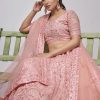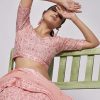 Light pink heavy embroidered bridal lehenga choli, made with thread, sequins and zarkan work. Comes with matching soft net lehenga, choli and dupatta.