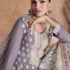 Lilac chiffon embroidered sharara suit made with thread sequins work. Comes with matching top, bottom and dupatta.