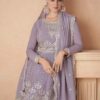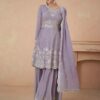Lilac Chinon silk embroidered sharara suit, made with thread zari sequin work. Comes with top trouser and dupatta.