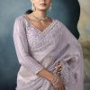 Lilac embroidered wedding saree, embellished with sequin stone and thread work. The saree comes with a matching contrast blouse.