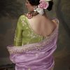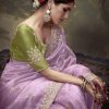 Lilac embroidered wedding saree, embellished with sequin stone and thread work enhanced by fancy tassels. The saree comes with a matching contrast blouse.