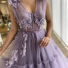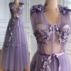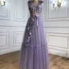 Lilac Floral Lace Evening Gown Dress beautifully hand crafted together with embroidered beaded work patterns all over the dress.