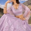 Lilac heavily embellished bridal lehenga choli designed with hand made mirror, cutwork and zarkan heavy work. The outfit comes with a net lehenga, choli and dupatta.
