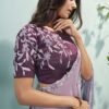 Lilac organza silk designer saree crafted with sequin and cord embroidery work. The saree comes with a unstitched matching banglori silk blouse.