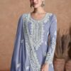 Lilac silk embroidered palazzo Suit, made with thread zari sequin work. Comes with top, trouser and dupatta.