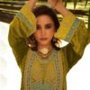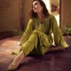 Lime Green luxury velvet embroidered pant suit, made with resham & thread sequin work. Includes velvet top pashmina bottom and a velvet dupatta.