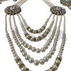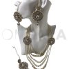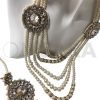 Long Moti And Crystal Necklace Set includes maang tikka and earrings.