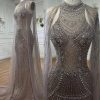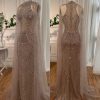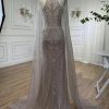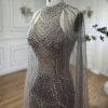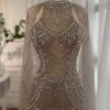 Luxury cape sleeve beaded evening dress, beautifully hand crafted together with sequins all over the dress.