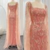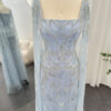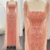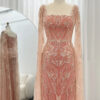 Luxury cape sleeve crystal embellished Arabic evening gown, beautifully hand crafted together with sequins all over the dress.