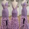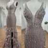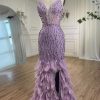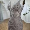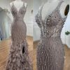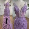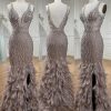 Luxury feathered plunge neck embellished evening dress, beautifully hand crafted together with sequins all over the dress.