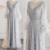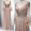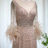 Luxury feathered sleeve sequin embellished evening bridal party dress, beautifully hand crafted together with sequins all over the dress.
